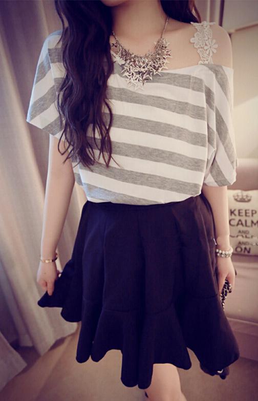 Stripe Lace Reveal Shoulder