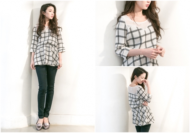 Gingham Mesh Collar Top(SOLD)